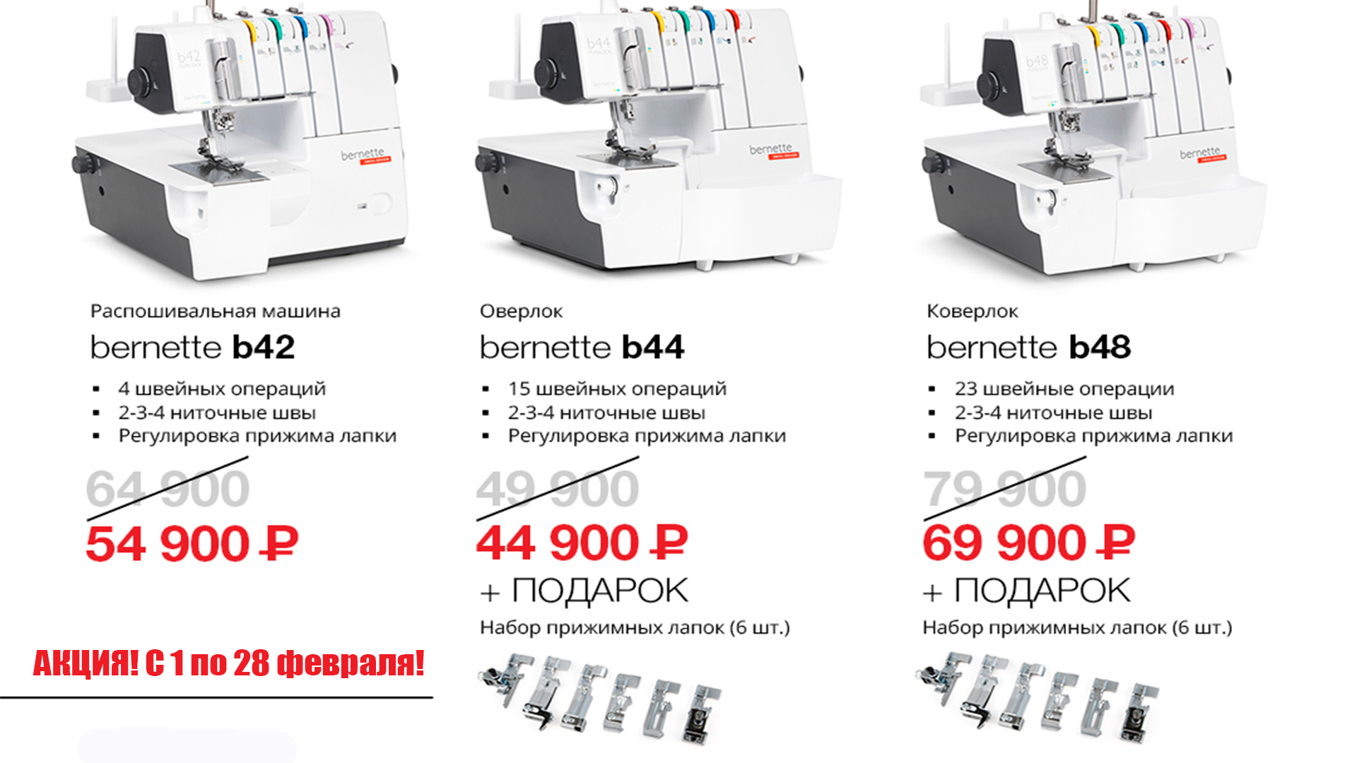 В продаже подарочные сертификаты, которые можно использовать для покупки швейного оборудования и товаров для шитья. Номинал от 1000 руб.